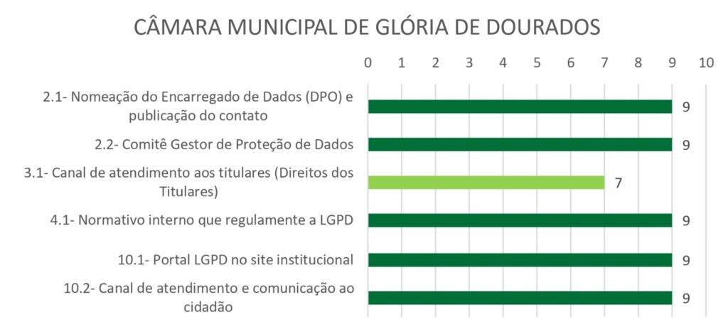 Também merece destaque o desempenho no item relativo ao atendimento aos titulares de dados, que apresentou resultado positivo. Na análise qualitativa, o próprio Tribunal reconhece que o canal disponibilizado por meio do e-mail do encarregado mostra-se funcional, o que evidencia que a Câmara já ultrapassa a fase meramente formal, ingressando em estágio de aplicação prática das exigências da LGPD.